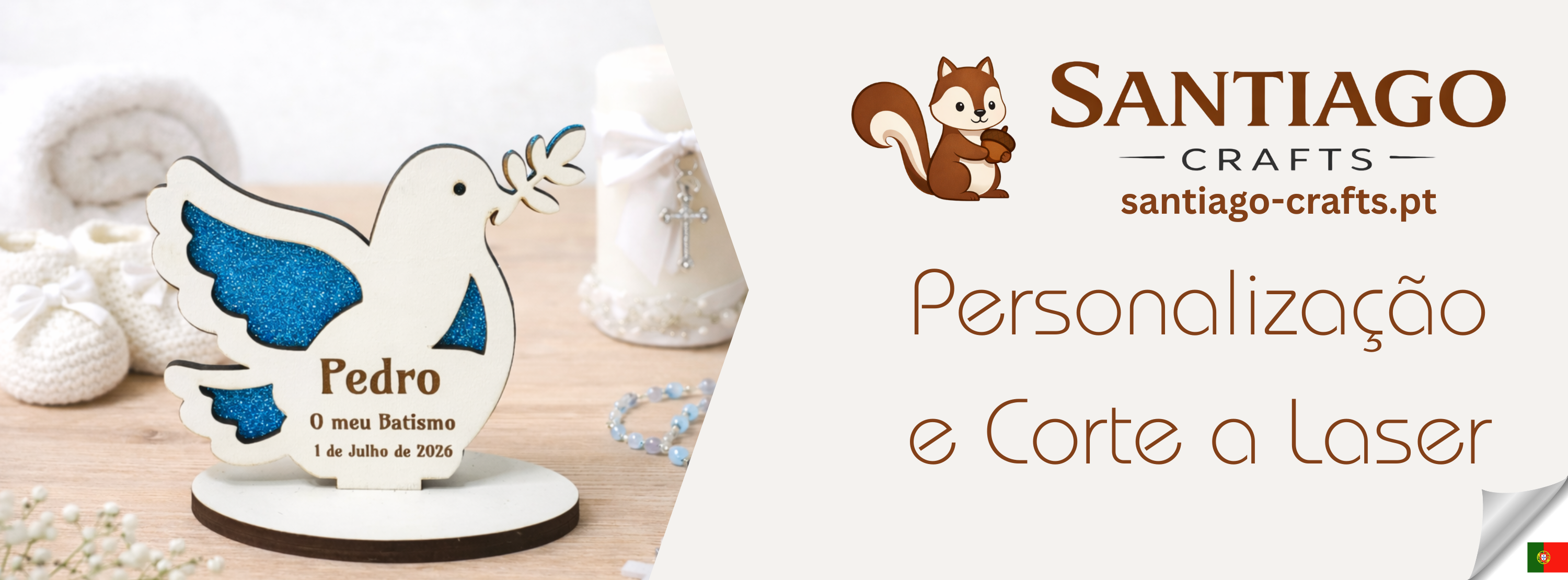 Lembrança de Batismo, Primeira Comunhão, Crisma em forma de Pomba da Paz, fundo em Glitter