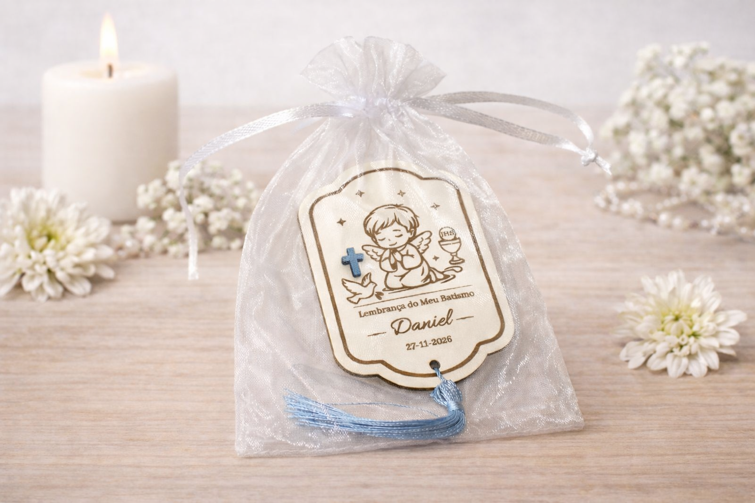- Batismo simples e familiar: lembrança discreta, com design delicado